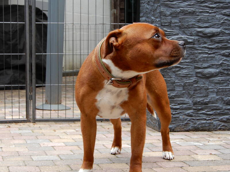 April 2019 Jarostaffs kennel is uitgebreid met een lang verwacht rood teefje genaamd Penny .